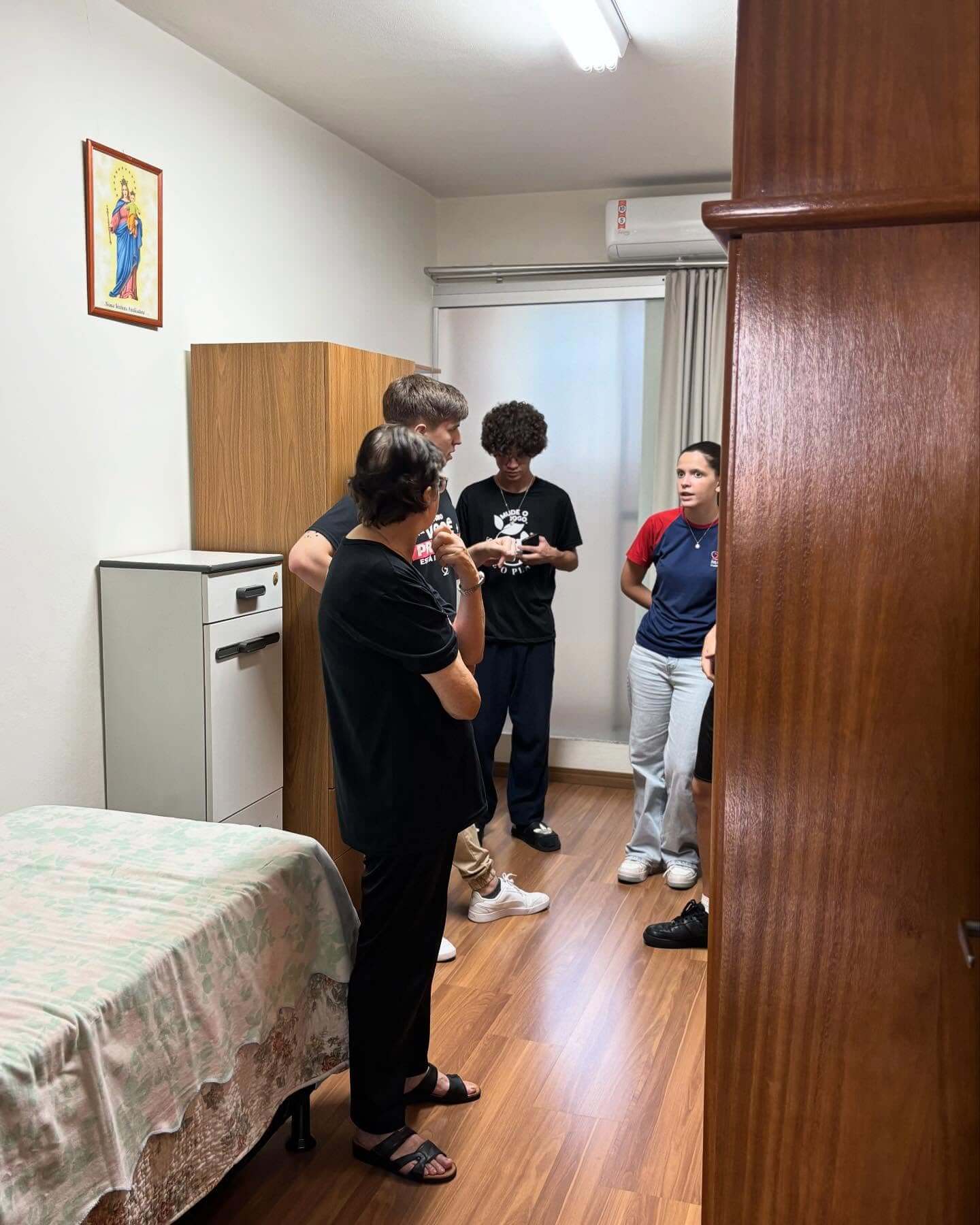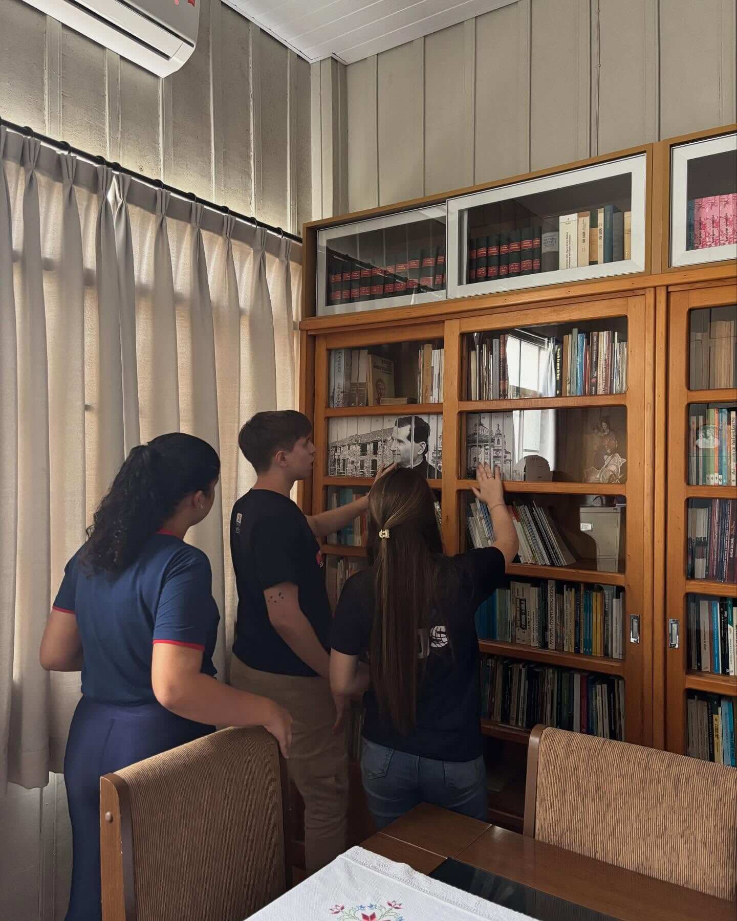 Os jovens da AJS do Ensino Médio viveram uma experiência muito especial ao visitar a Casa das Irmãs da nossa comunidade. Durante a visita, conheceram os espaços da casa, como os quartos, a capela e a biblioteca, e se encantaram com as fotos, histórias e lembranças compartilhadas pelas irmãs. Foi um momento de partilha que fortaleceu ainda mais os laços de fé, amizade e carinho entre os jovens e as irmãs.