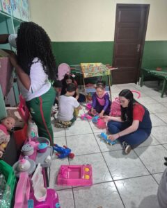 Os estudantes levaram lanches, brincaram e viveram momentos de muita interação com as crianças atendidas pela instituição.