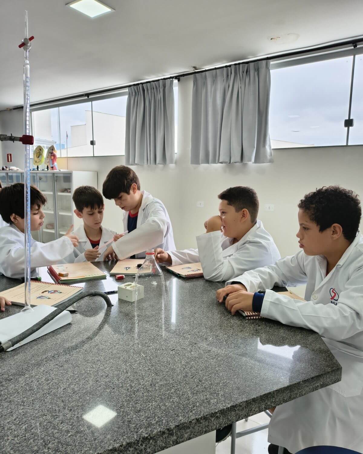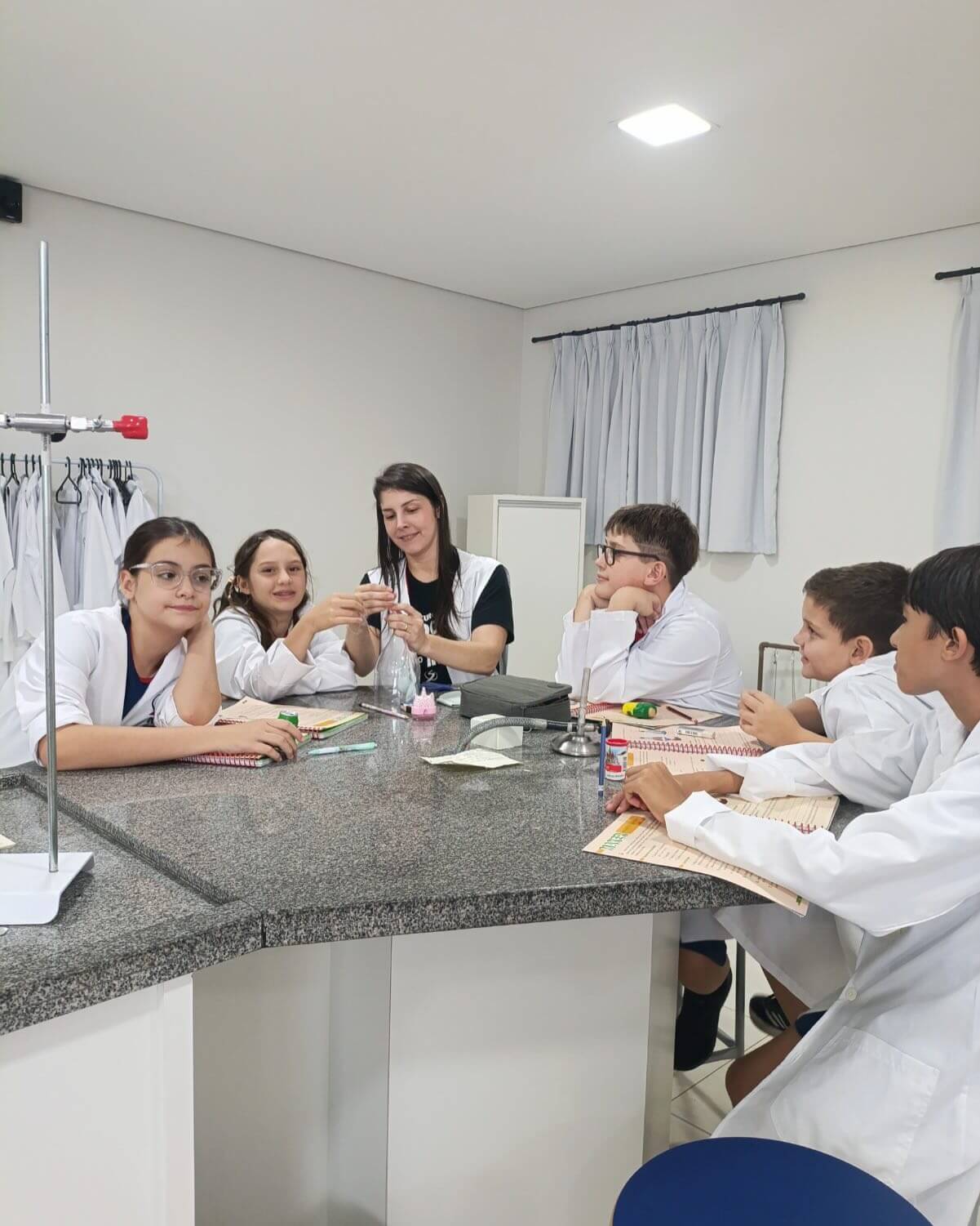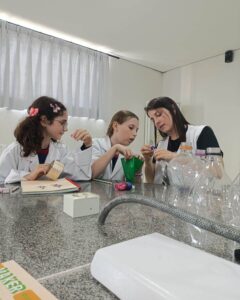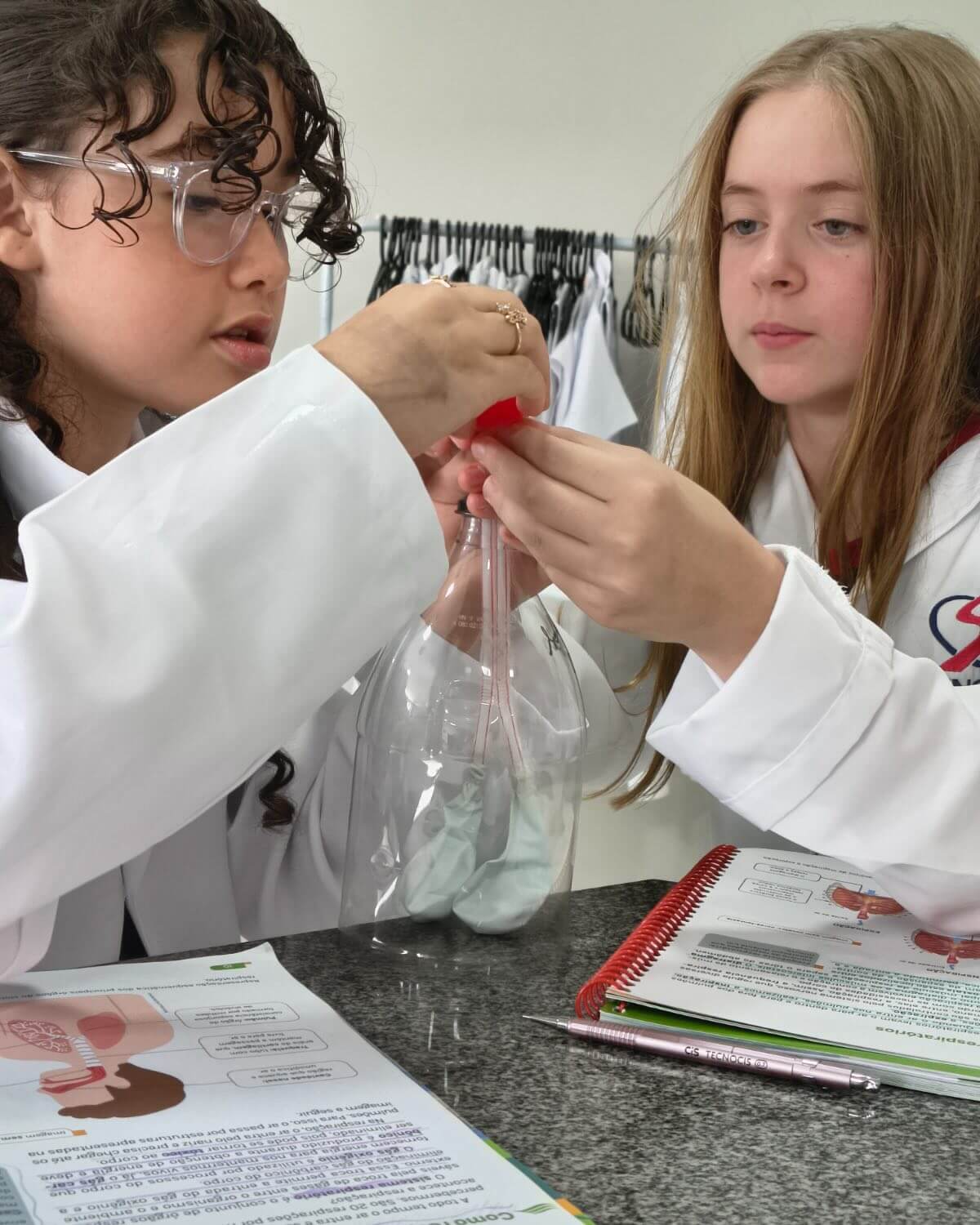 A atividade foi orientada pelas professoras Jeniffer e Karina e teve como objetivo demonstrar, de forma prática, o funcionamento do sistema respiratório. Durante a experiência, os estudantes puderam observar como ocorre a respiração, compreendendo o papel do diafragma nos movimentos de inspiração e expiração.