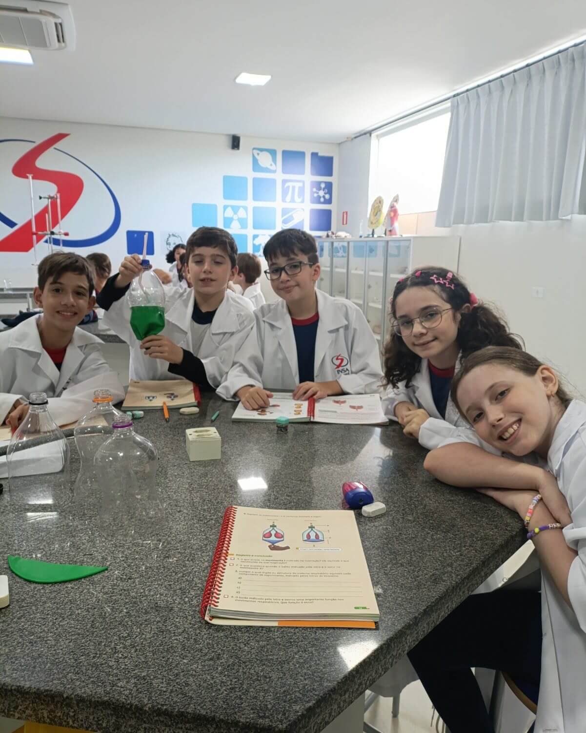 Os alunos do 5º ano D.S. e F.S. realizaram uma atividade prática durante as aulas de Ciências, construindo um pulmão artificial com o uso de garrafa PET e balões. A proposta faz parte do material didático do componente curricular.