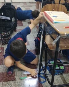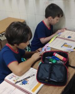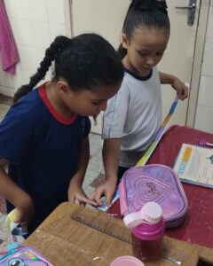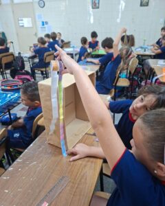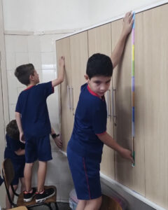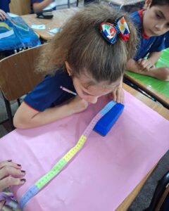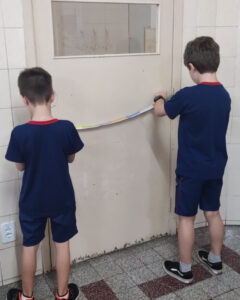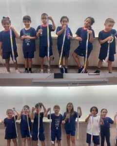 Os alunos do 2º ano A. Z., J. C. e J. M. estão explorando o tema Medidas de Comprimento, aprofundando seus conhecimentos sobre centímetros e milímetros e aprendendo a utilizar instrumentos de medição, como régua e metro.Para tornar o aprendizado ainda mais significativo, as turmas participaram de uma atividade prática pela sala de aula e por outros espaços da escola. Durante a proposta, os estudantes mediram mesas, portas, cadeiras e diversos objetos do ambiente escolar, colocando em prática os conceitos trabalhados em aula.Com muita curiosidade, participação e espírito investigativo, as crianças perceberam que as medidas fazem parte do cotidiano e são fundamentais para organizar, comparar e compreender melhor o mundo ao nosso redor.