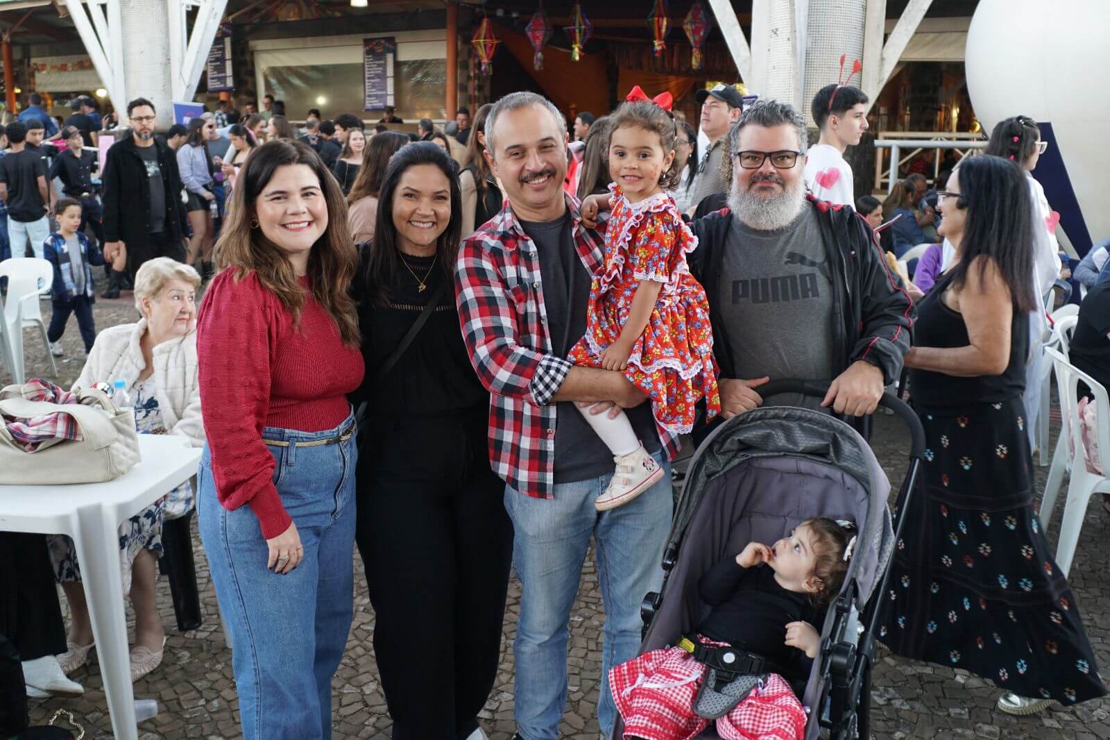As apresentações de quadrilha encantaram o público, especialmente com os trajes coloridos e a animação dos participantes. Além disso, brincadeiras como pescaria e correio elegante garantiram a diversão da garotada.