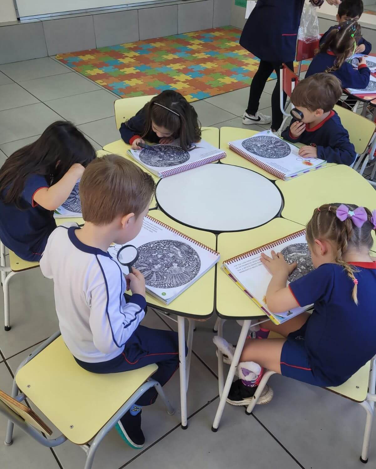 Durante a atividade, as crianças foram convidadas a explorar sons, movimentos e expressões, relacionando a música à arte. Em especial, apreciaram e interpretaram corporalmente a obra “Os quatro filhos de um casal de artista”, da artista paranaense Denise Roman, exercitando a criatividade e a sensibilidade artística.