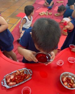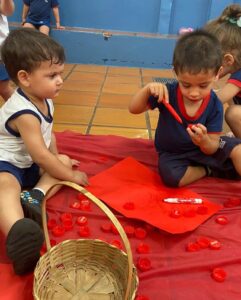 No dia 12 de março, as crianças do Infantil 2 JC e Infantil 2 JM participaram de uma atividade especial voltada ao reconhecimento das cores, etapa importante no desenvolvimento da percepção e da curiosidade na primeira infância.A proposta fez parte da experiência “Cadê? Vermelhos Fantásticos!”, realizada junto às professoras Luiza e Savana. Durante a atividade, as crianças foram convidadas a observar diferentes elementos na tonalidade vermelha, explorando materiais e objetos que despertaram os sentidos e incentivaram a descoberta.Por meio da interação e da exploração, surgiram perguntas que conduziram a experiência: o que é vermelho? O que conhecemos que tem essa cor? Onde podemos encontrá-la? A partir dessas reflexões, os estudantes puderam investigar, tocar, observar e experimentar, fortalecendo a curiosidade e ampliando o olhar para o mundo ao seu redor.A atividade proporcionou momentos de aprendizado lúdico e significativo, valorizando a descoberta e o desenvolvimento das crianças por meio da observação, da experimentação e da partilha.