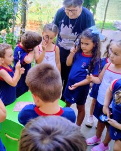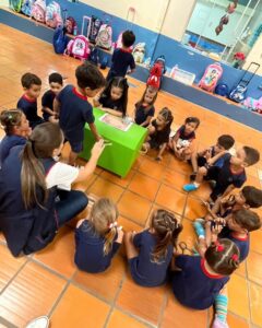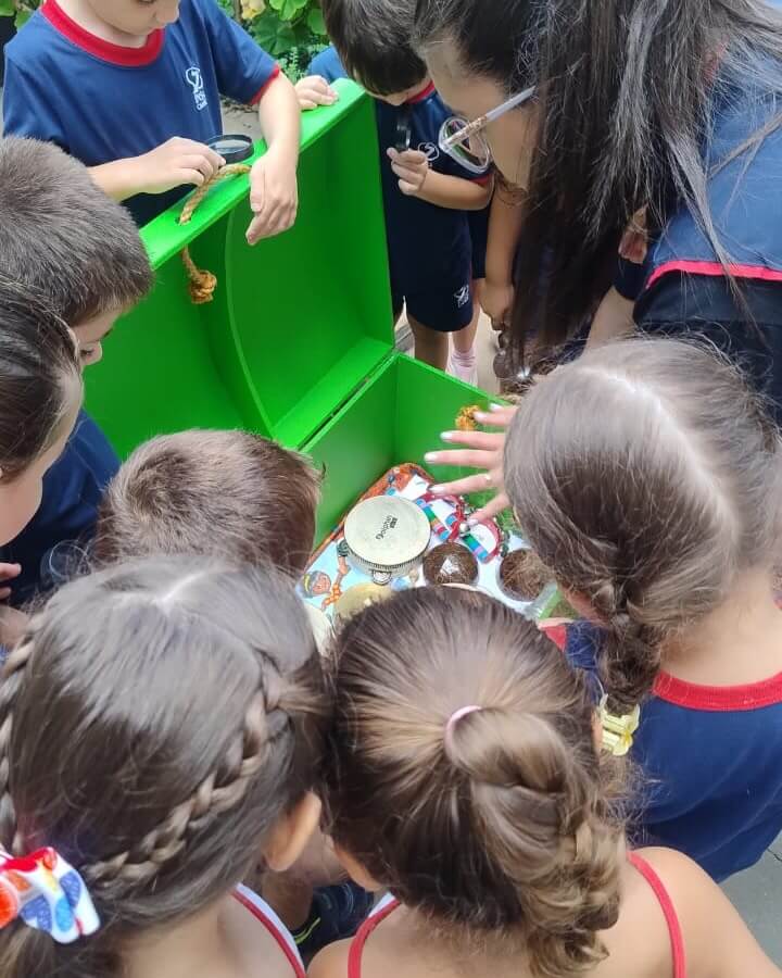 No dia 26 de fevereiro, as crianças do Infantil 4 participaram de uma desafiadora e divertida “caça ao tesouro”, transformando diferentes espaços da escola em um cenário de exploração, descobertas e aprendizado.A atividade começou com uma rica conversa em sala de aula e a observação de um mapa, despertando a curiosidade dos pequenos exploradores. Em seguida, guiadas por setas espalhadas pelo caminho, as crianças se orientaram e percorreram diversos ambientes da escola em busca de pistas. A cada novo sinal de localização, a expectativa aumentava, até que finalmente o tão esperado baú do tesouro foi encontrado.Dentro dele, as crianças descobriram instrumentos musicais, fotos da Ilha de Itamaracá e da grande compositora brasileira Lia de Itamaracá, referência da ciranda no Brasil. A descoberta marcou o início de uma nova jornada de aprendizagem.A proposta faz parte do Giro “Fui para a escola aprender a cirandar!”, que proporcionará às crianças um amplo contato com a cultura popular brasileira, valorizando a riqueza da ciranda e suas expressões culturais de forma lúdica.