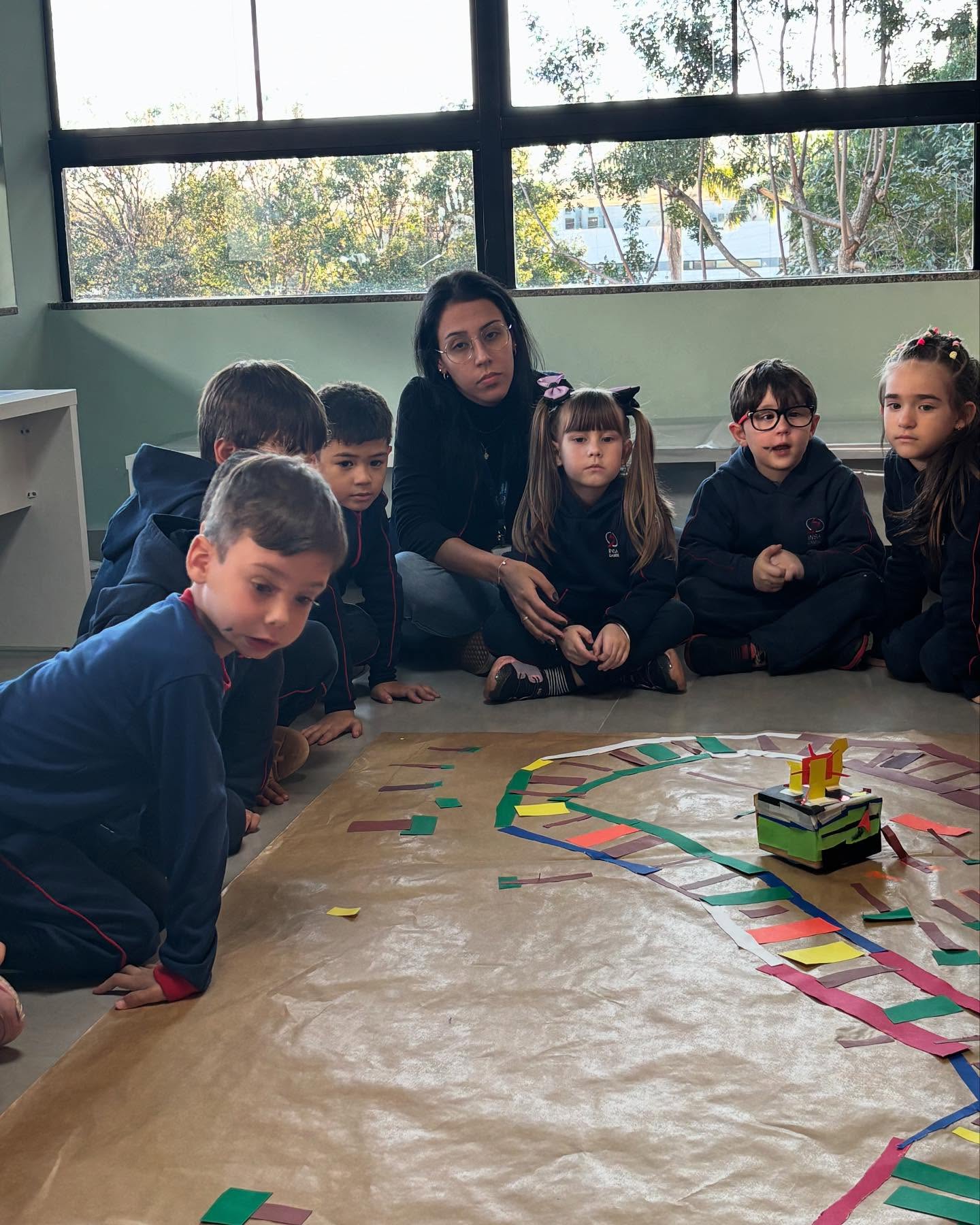 Inspirados na música Trenzinho do Caipira, as crianças desenvolveram trilhos, transformaram o “Cubetto” em uma incrível locomotiva e, por fim, se desafiaram com programação simples de robótica.