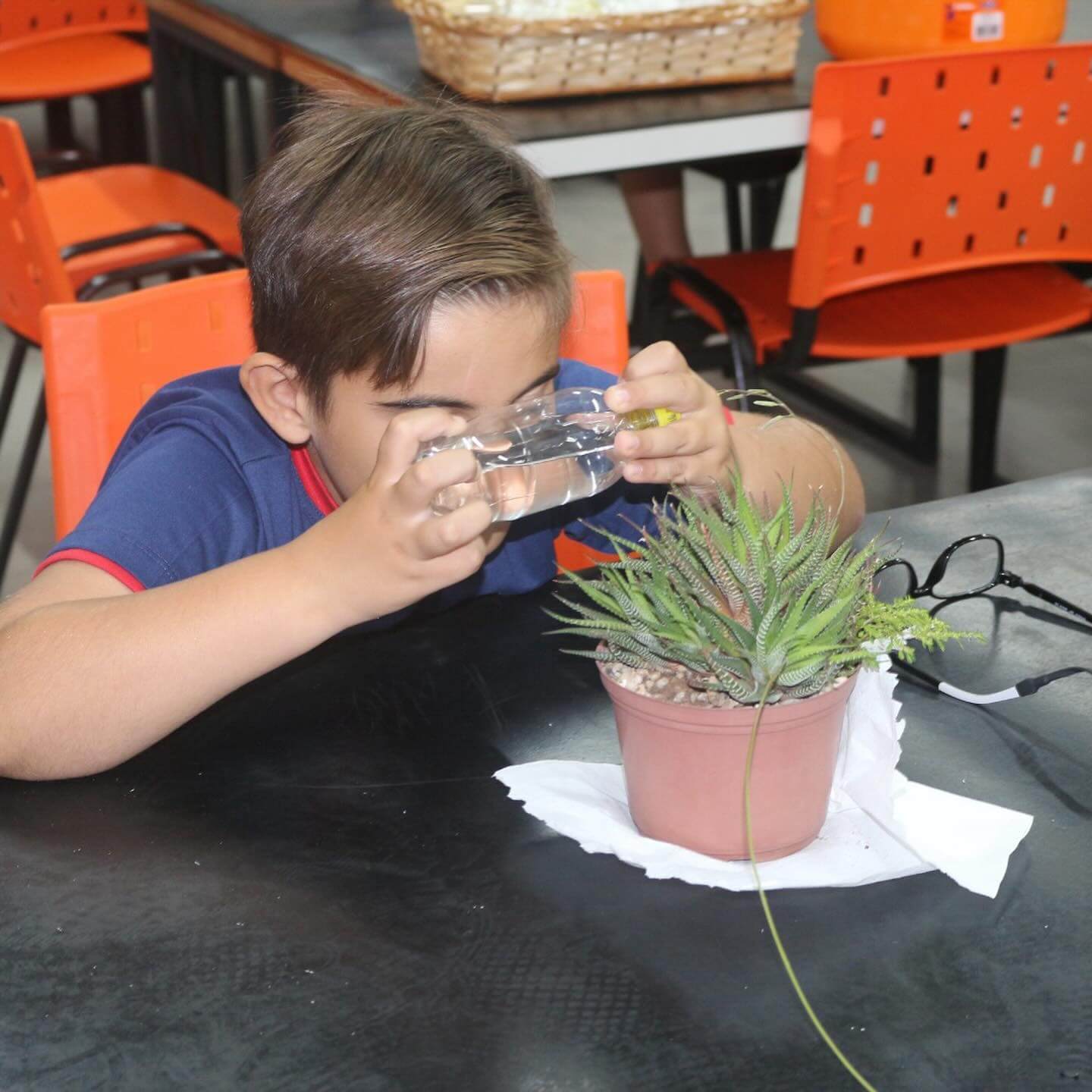 Os alunos do 2º ano, JC, JM e AZ, receberam um desafio curioso: observar os detalhes das plantas utilizando uma lupa. No entanto, em vez de usar uma lupa convencional, eles precisavam construir uma versão caseira, empregando apenas uma garrafa PET e água. Mas será que isso realmente funcionaria? A resposta é sim! Quando a luz atravessa o plástico da garrafa e encontra a água em seu interior, ocorre um desvio nos feixes luminosos, criando um efeito de ampliação semelhante ao de uma lente de aumento. Dessa forma, os detalhes das plantas tornaram-se visíveis de maneira ampliada, permitindo uma observação mais detalhada.