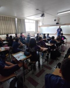Na última aula de Ciências do 7º ano do Ensino Fundamental II, os alunos tiveram a oportunidade de colocar em prática a teoria sobre as propriedades do ar. A professora Jaqueline Mendes Milani, em parceria com o diretor do Colégio, Rodrigo, planejou uma aula prática emocionante e interativa.