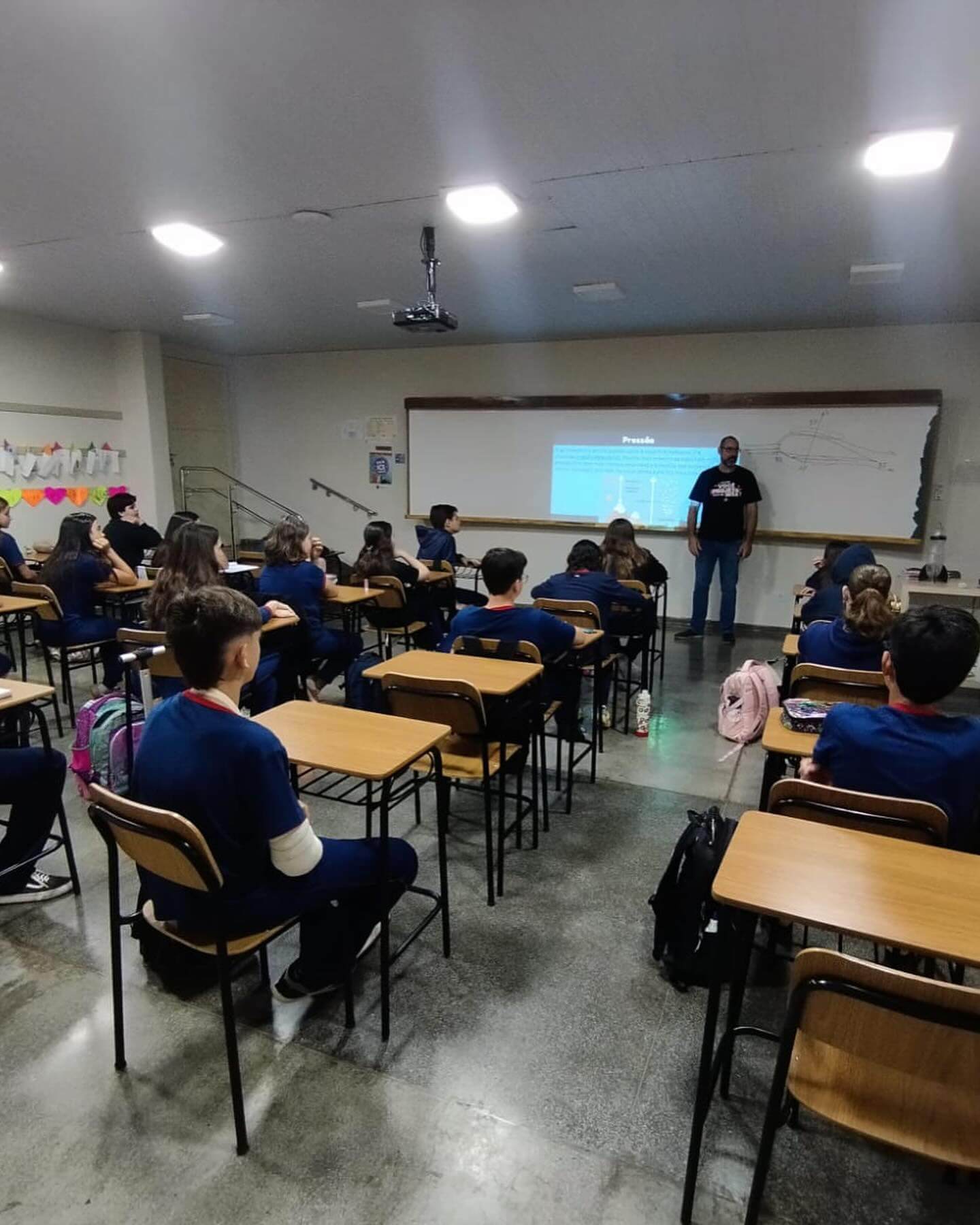Na última aula de Ciências do 7º ano do Ensino Fundamental II, os alunos tiveram a oportunidade de colocar em prática a teoria sobre as propriedades do ar. A professora Jaqueline Mendes Milani, em parceria com o diretor do Colégio, Rodrigo, planejou uma aula prática emocionante e interativa.