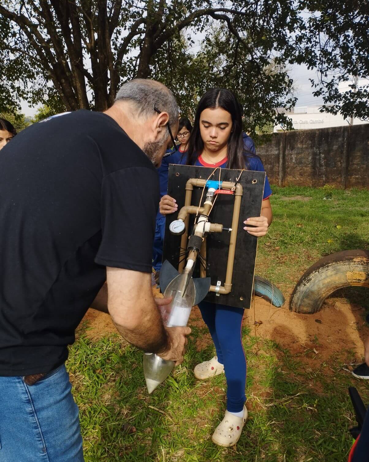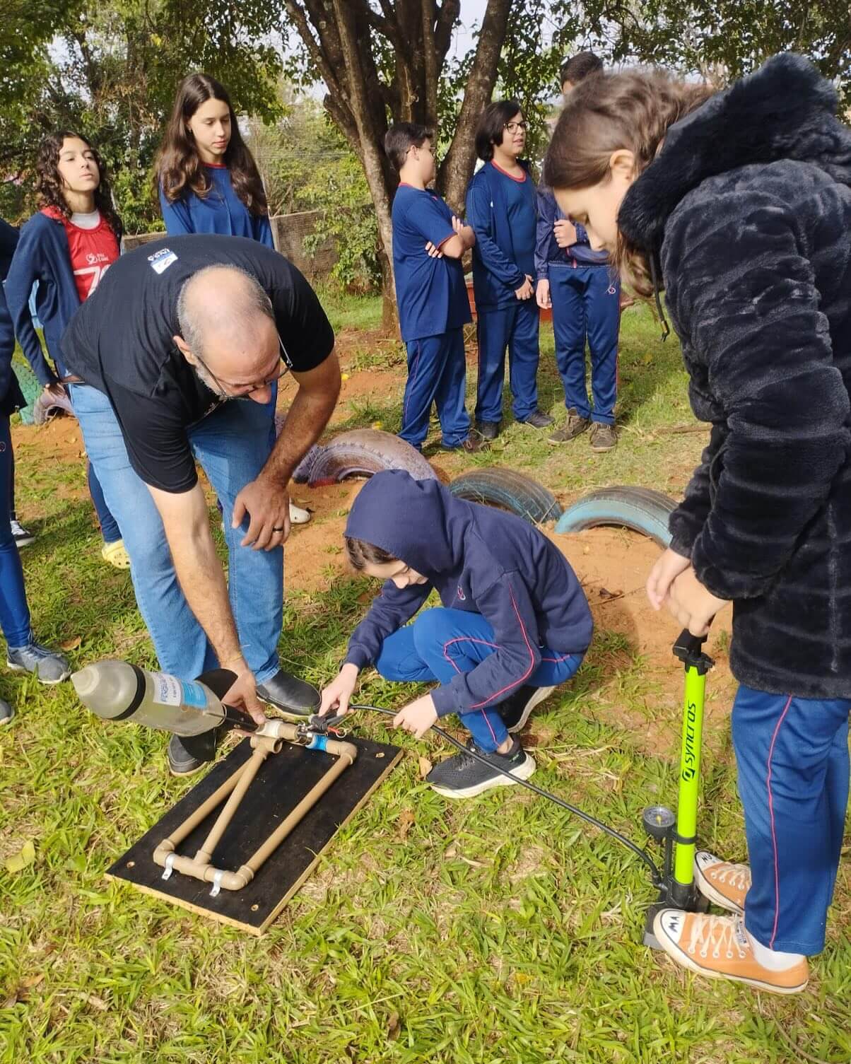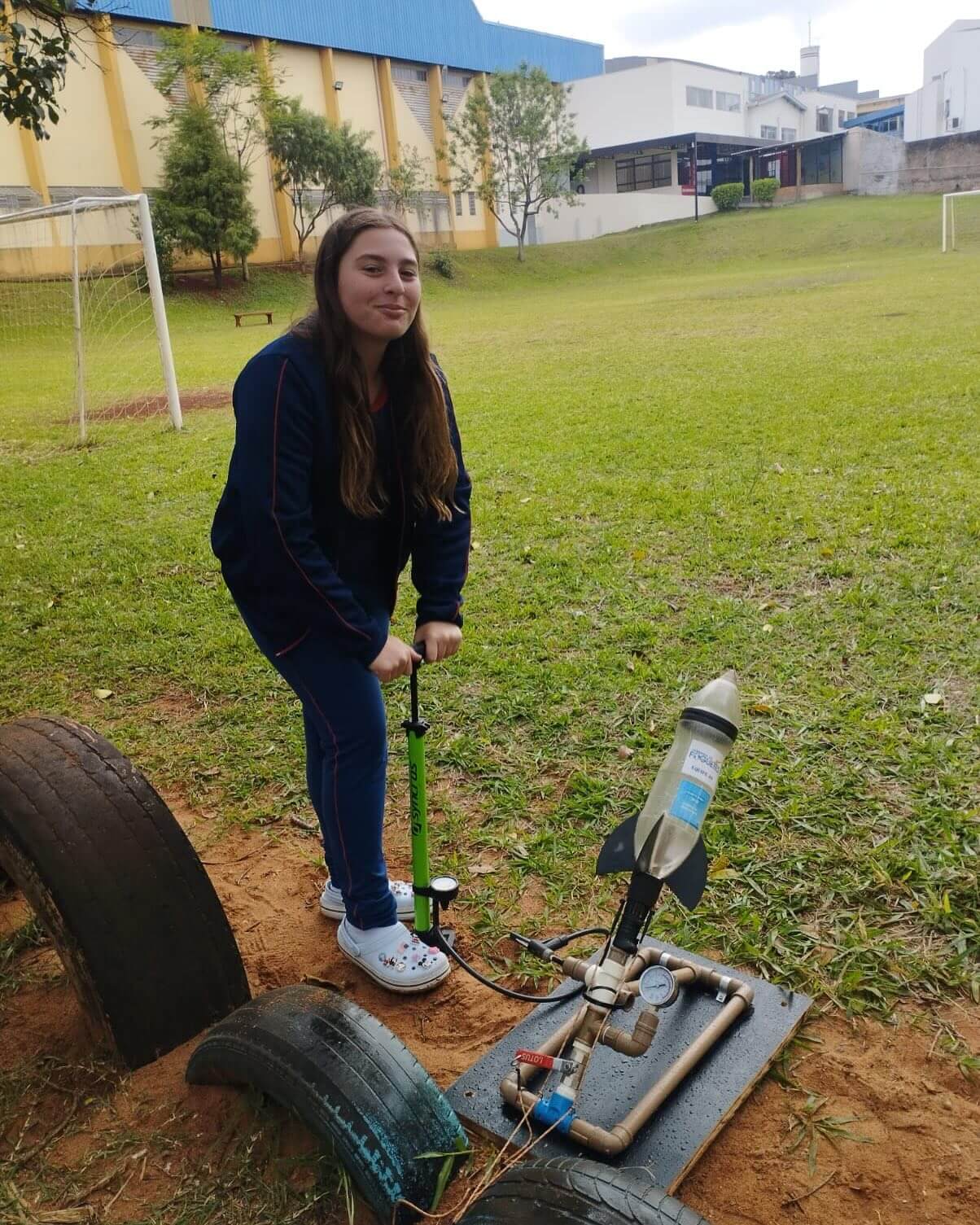 Os estudantes aprenderam sobre conceitos como pressão atmosférica e a relação entre pressão e volume, e, em seguida, tiveram a chance de aplicá-los no lançamento de foguetes de garrafa PET. Utilizando água e ar pressurizado, os foguetes foram lançados ao céu, demonstrando de forma concreta os princípios científicos estudados em sala de aula.