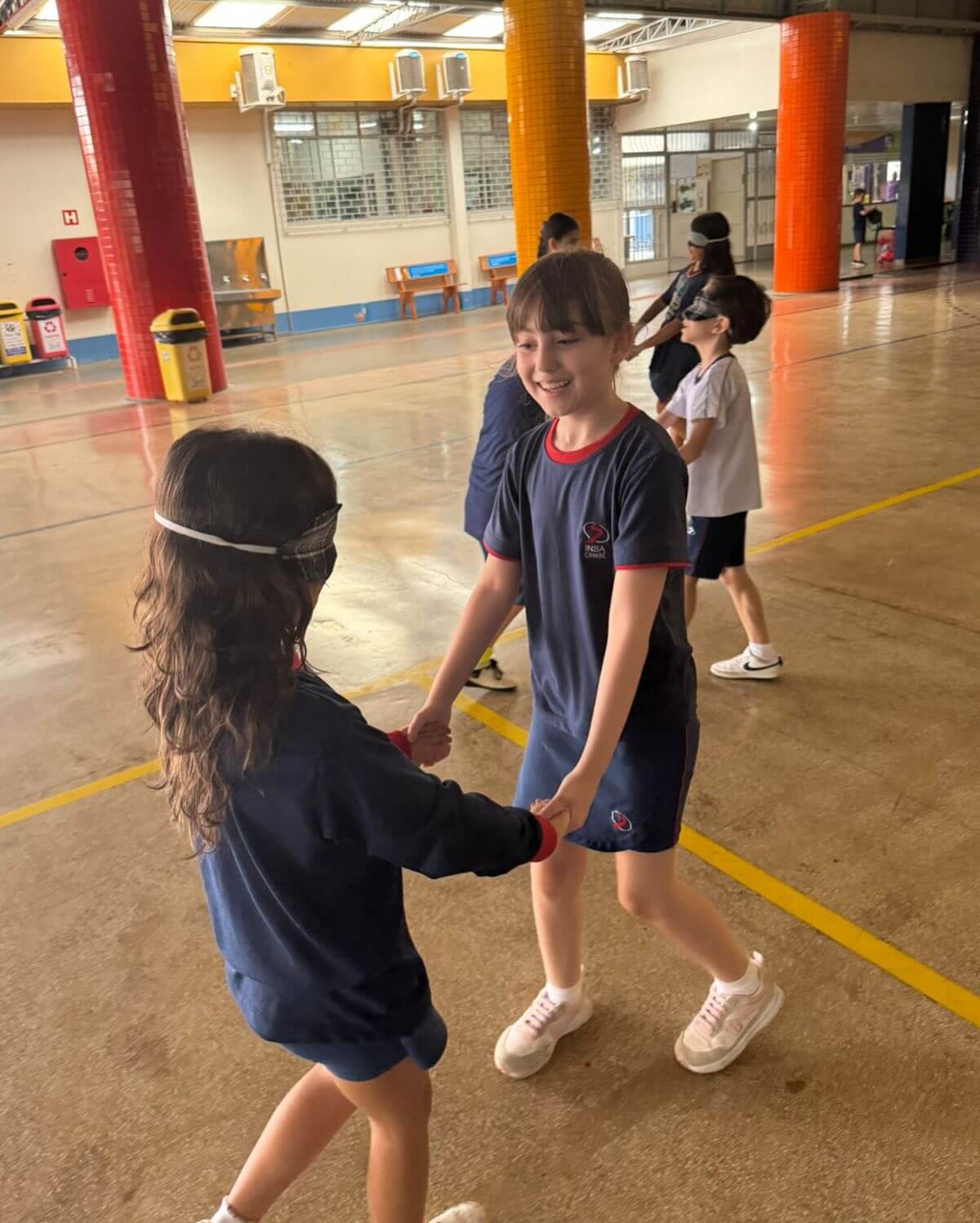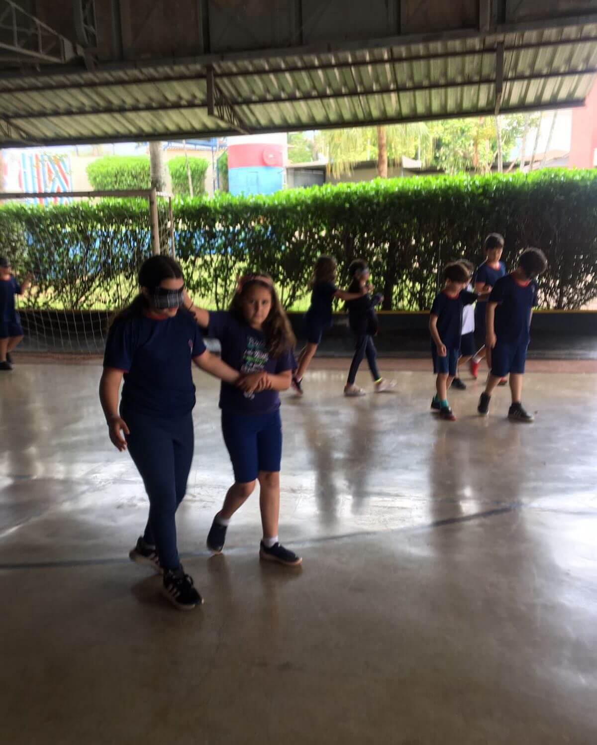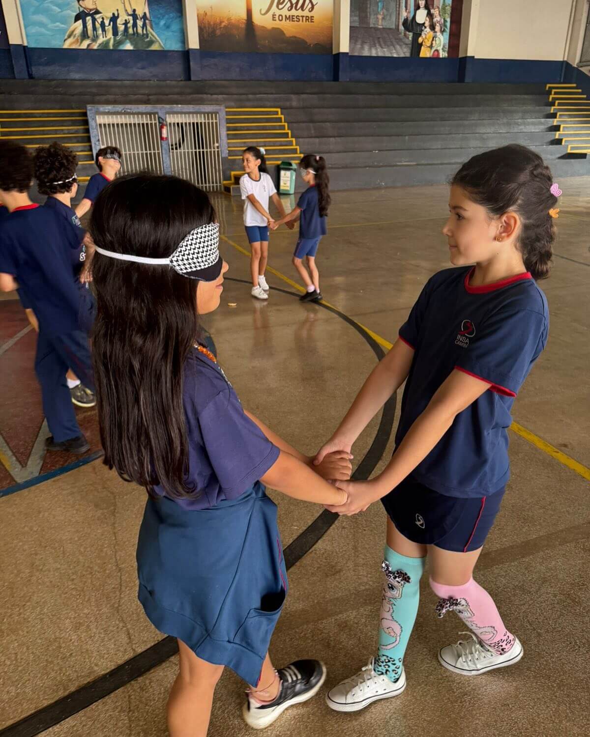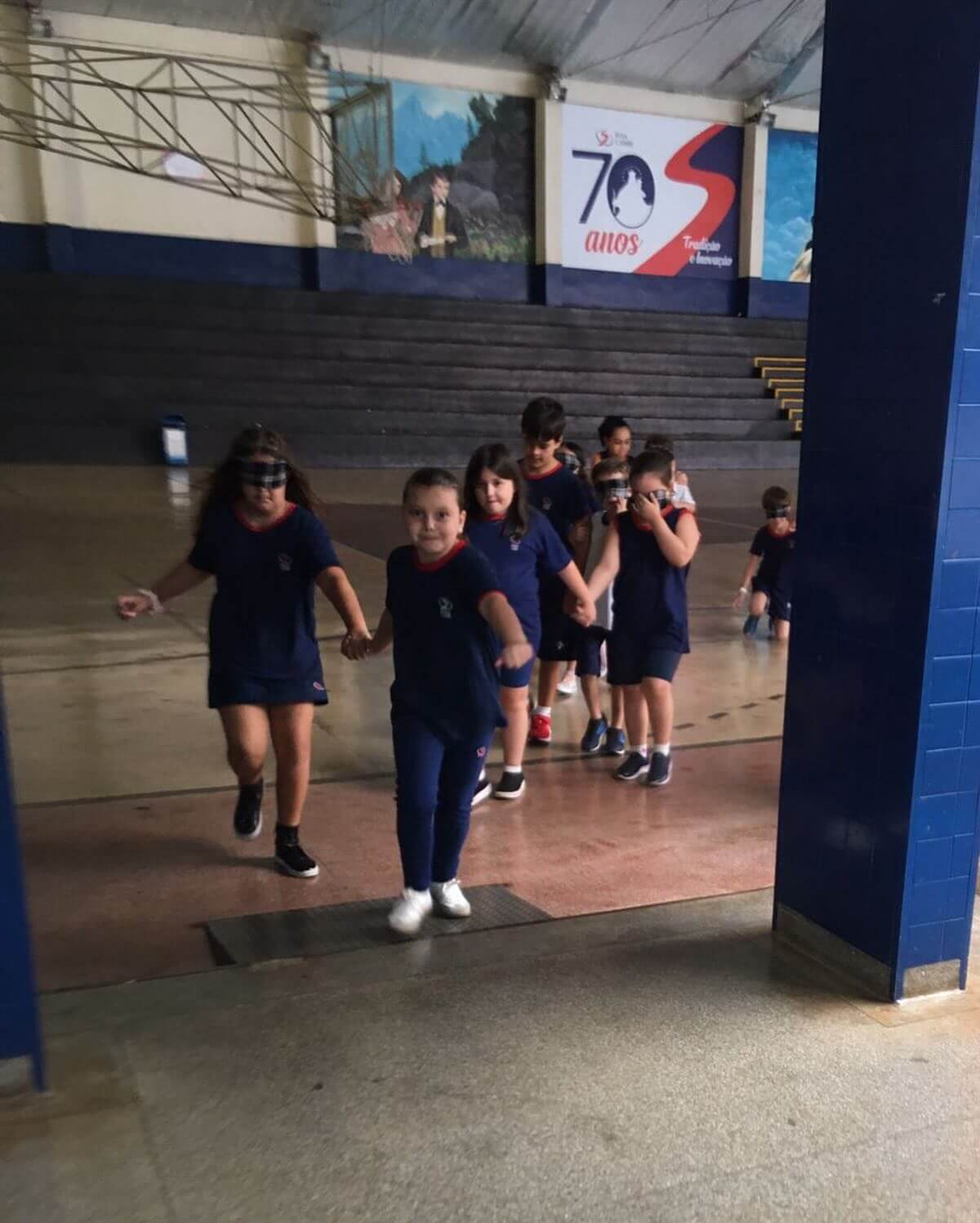 As turmas participaram de uma dinâmica em duplas, onde uma criança teve os olhos vendados e a outra ficou responsável por guiar o colega. A atividade fez todos perceberem que ser luz é iluminar o caminho de quem está ao nosso lado, com amor e respeito.