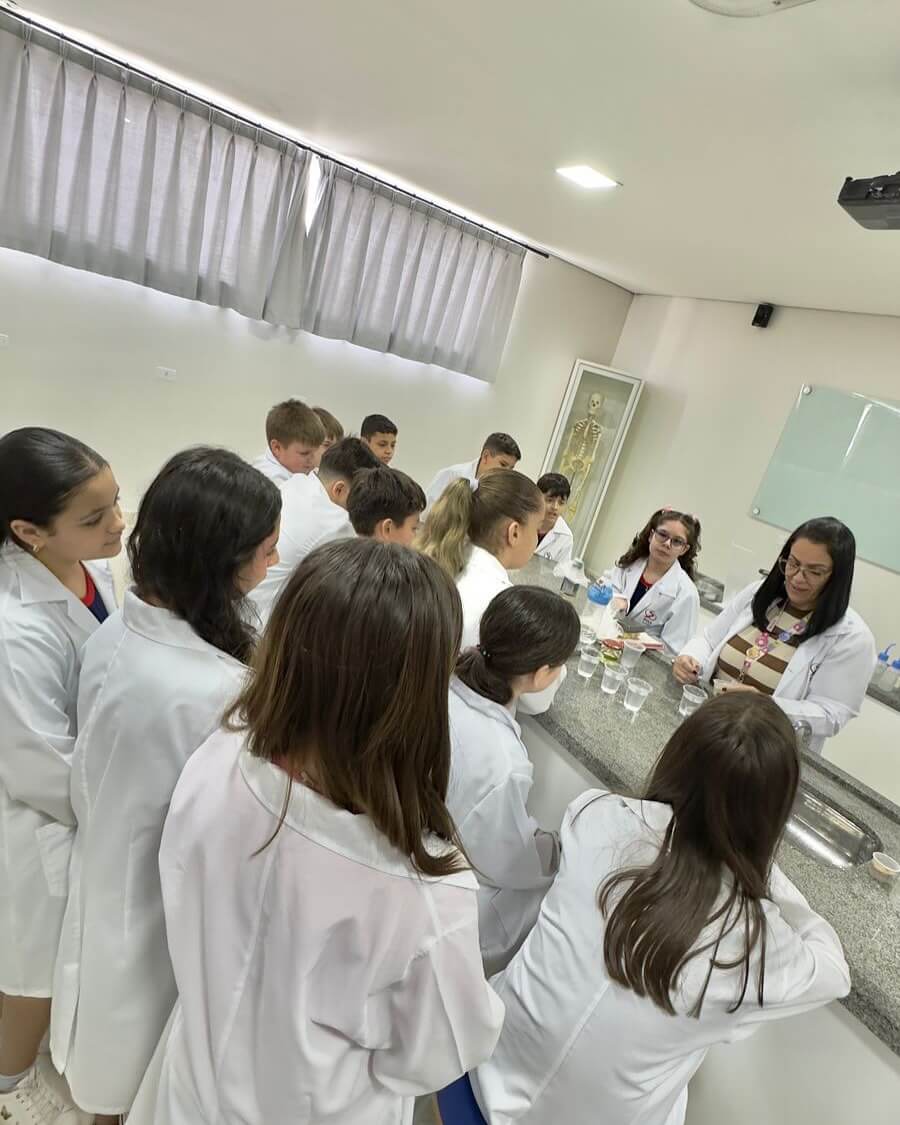 Com a mediação das professoras Jeniffer e Karina, a turma pôde compreender, de forma prática, quais materiais se dissolvem e quais não se misturam.