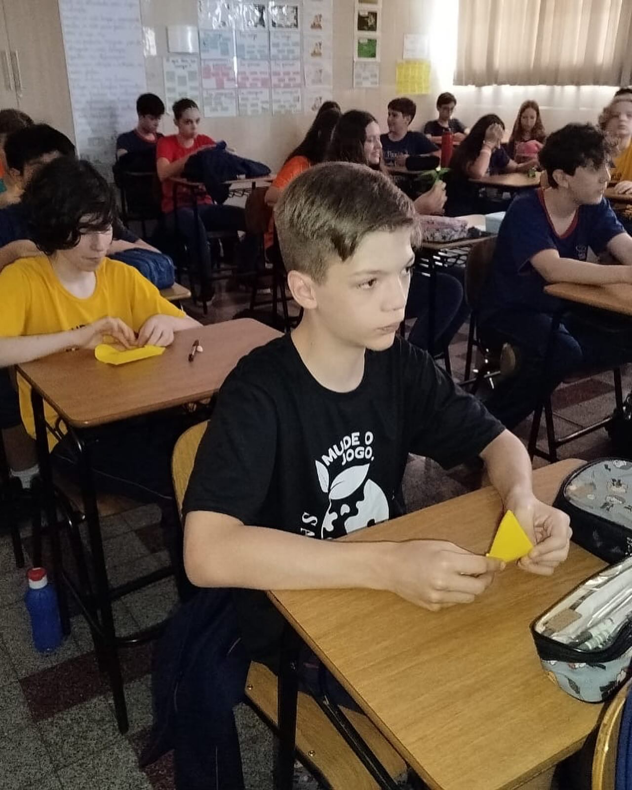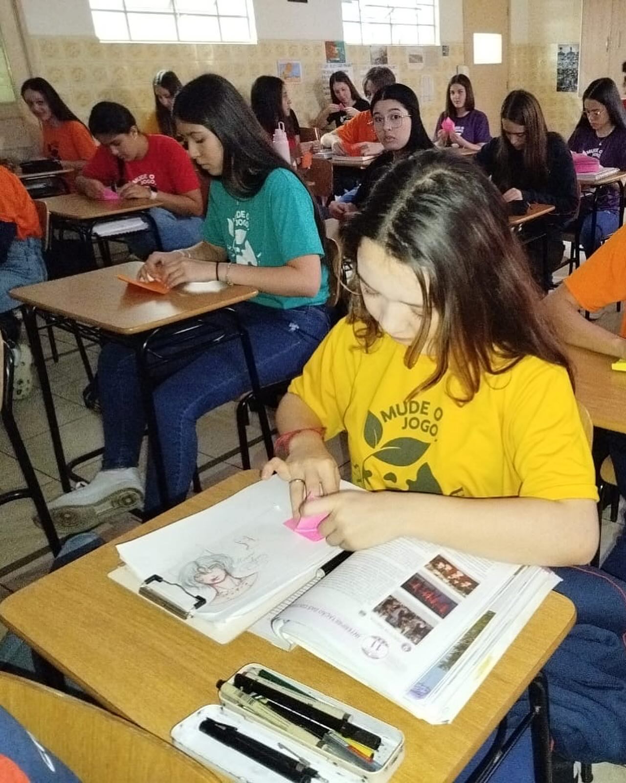 Foi realizado, com todas as turmas, um momento de vivência por meio da metáfora sobre o voo das aves, relacionando-a à função da liderança em sala de aula. Os estudantes refletiram: Qual é um talento que tenho? Para onde quero voar (meus sonhos)?