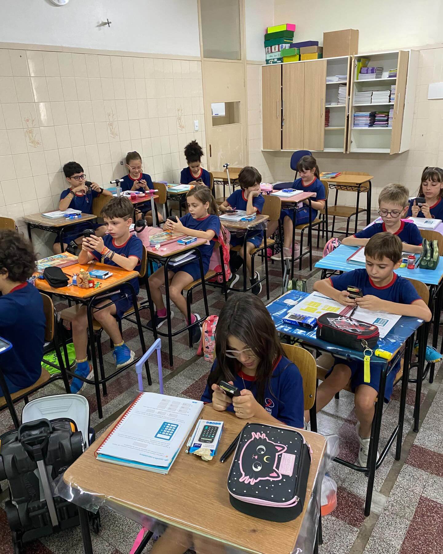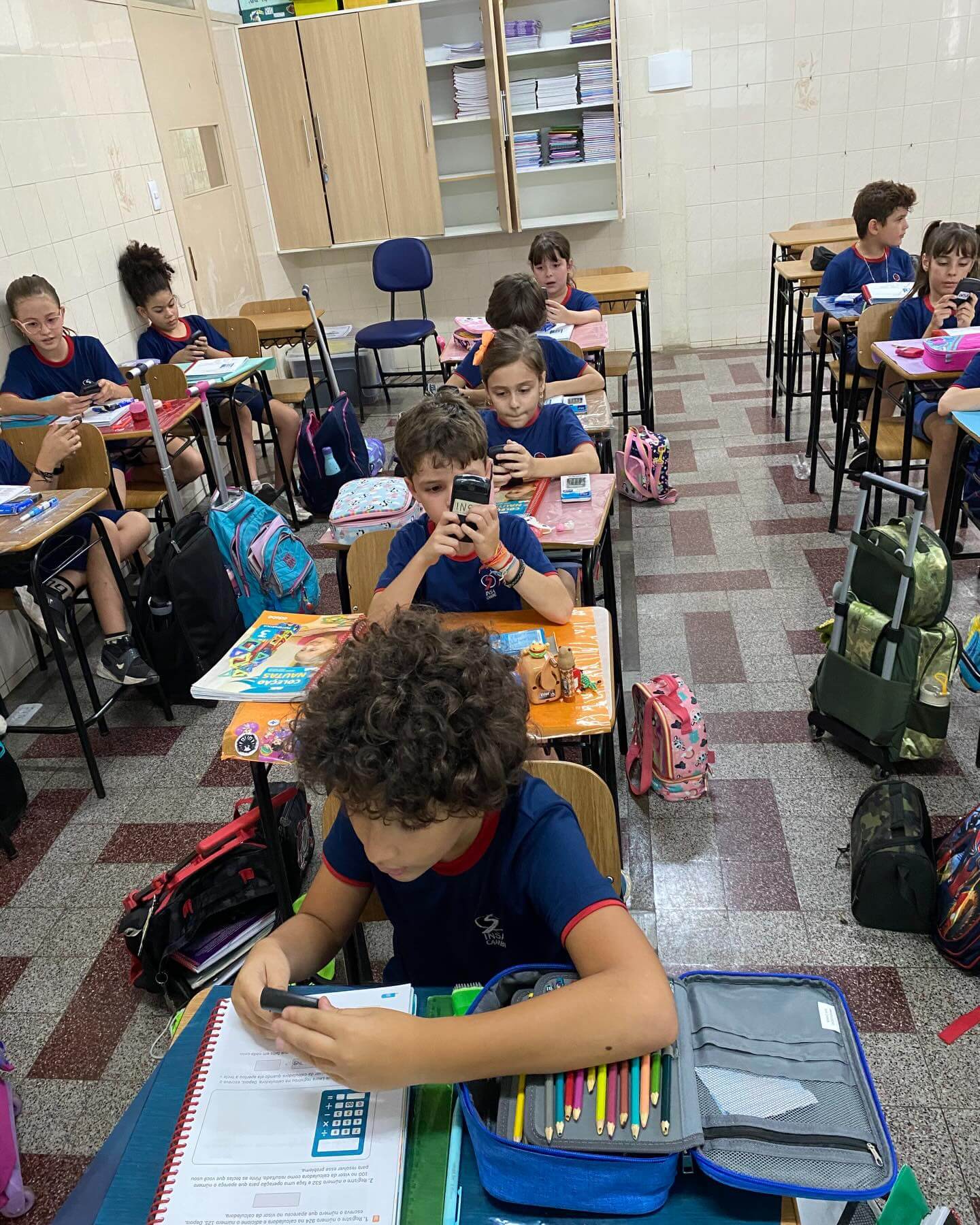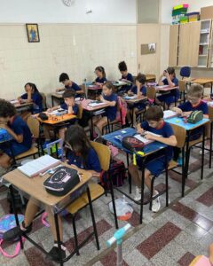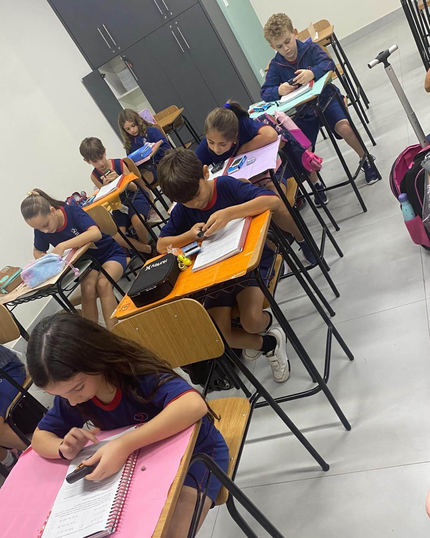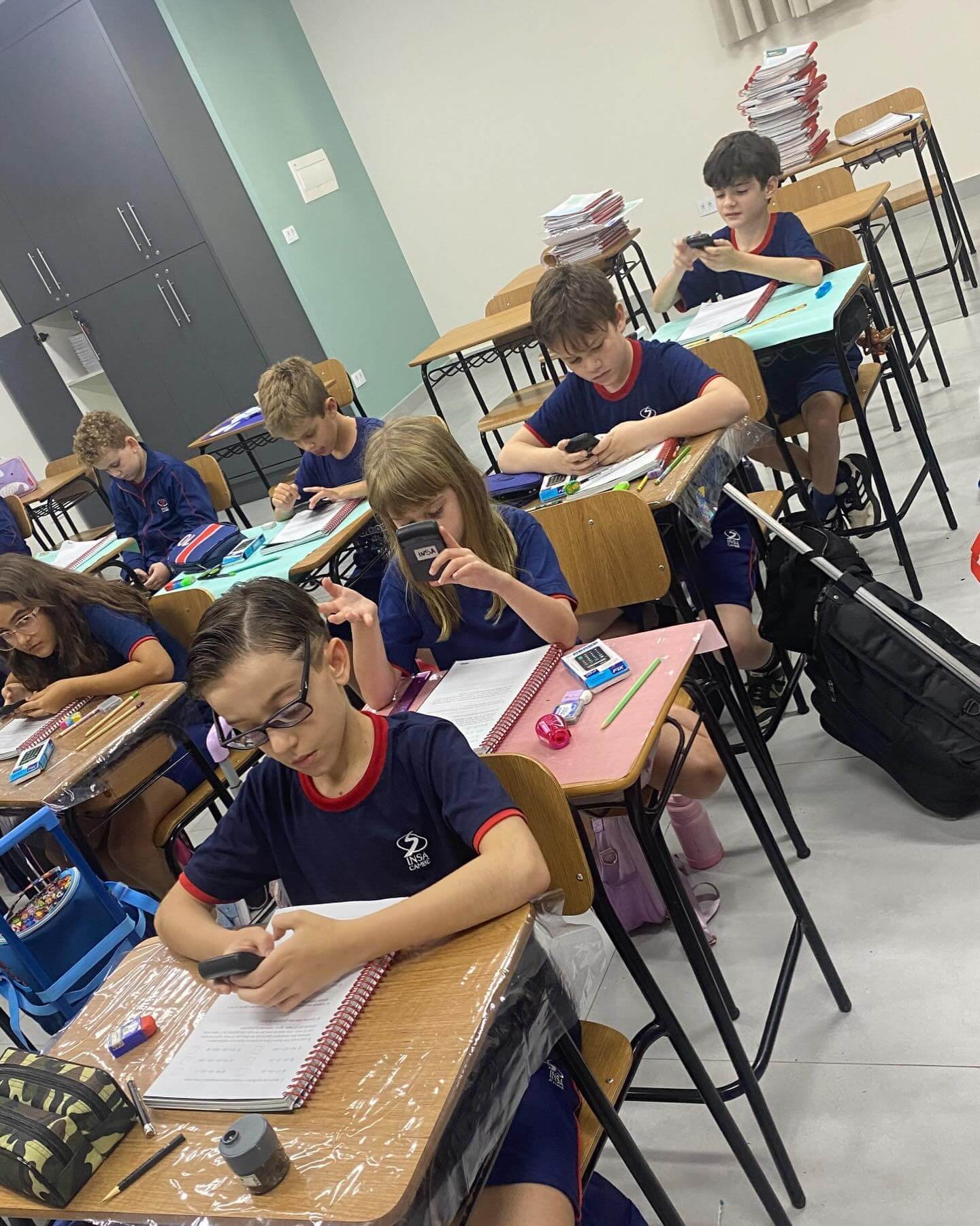 Os alunos do 3º ano C.A., L.V. e M.A., juntamente com as professoras Patrícia, Daniele e Monik, participaram de uma atividade diferenciada durante a aula de Matemática, com foco no uso da calculadora como ferramenta de aprendizagem.