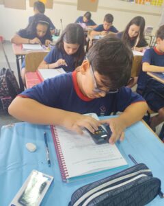 A proposta possibilitou que os estudantes explorassem as funções do equipamento e compreendessem sua utilidade na resolução de operações matemáticas. Durante a atividade, os alunos tiveram contato direto com a calculadora, desenvolvendo maior autonomia e raciocínio lógico.