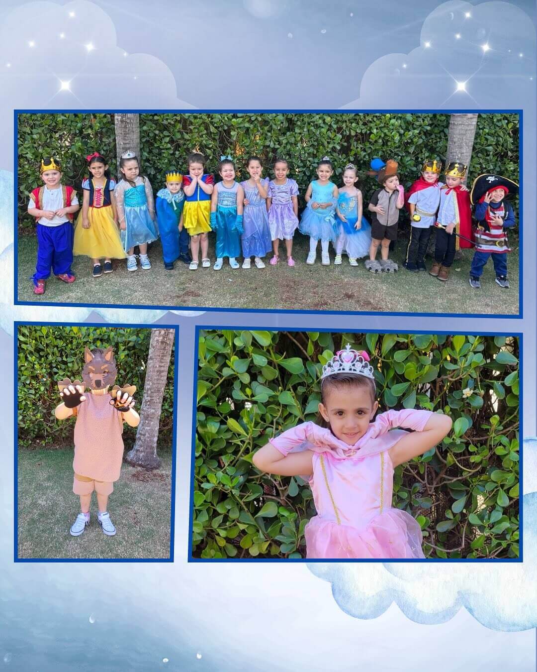 Para introduzir o olhar dos pequenos do Infantil 3 para o gênero textual contos, o convite foi para que escolhessem um personagem de um conto de fadas e viessem trajados para a escola.